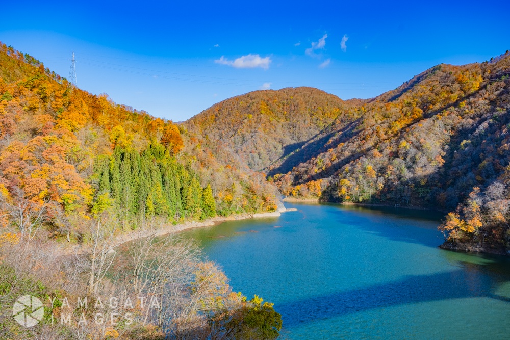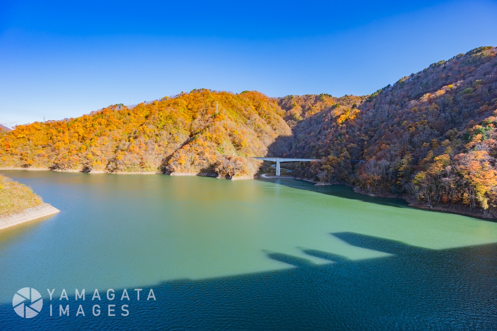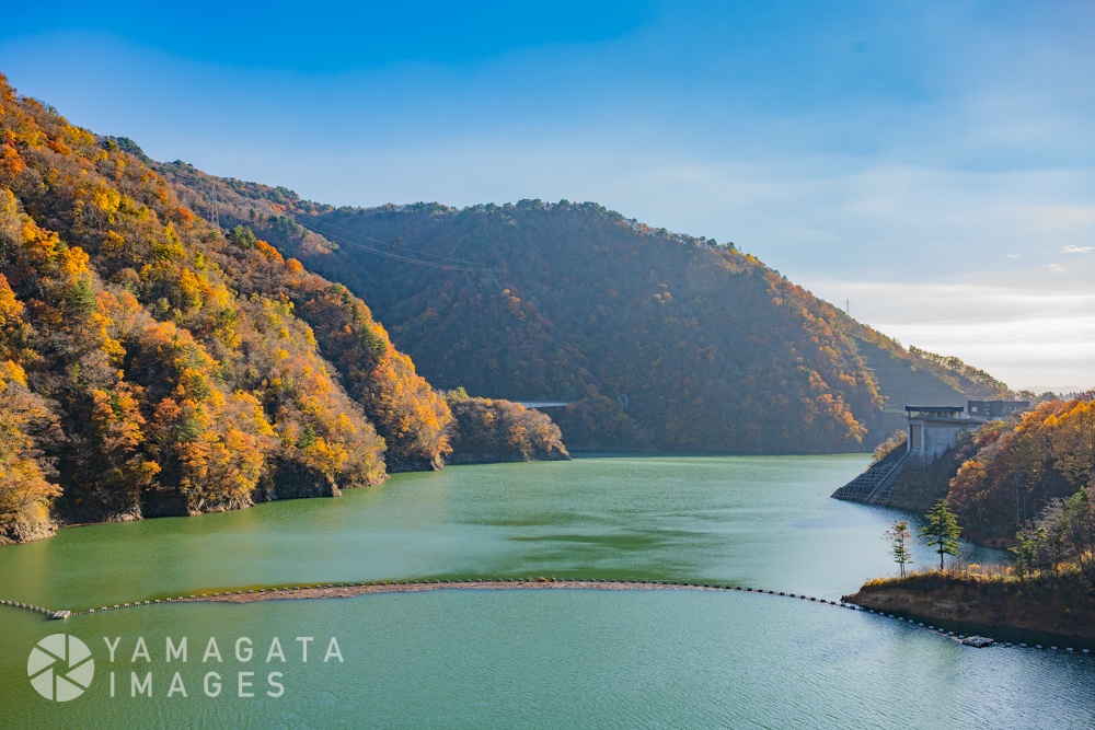紅葉のながい百秋湖(長井ダム)