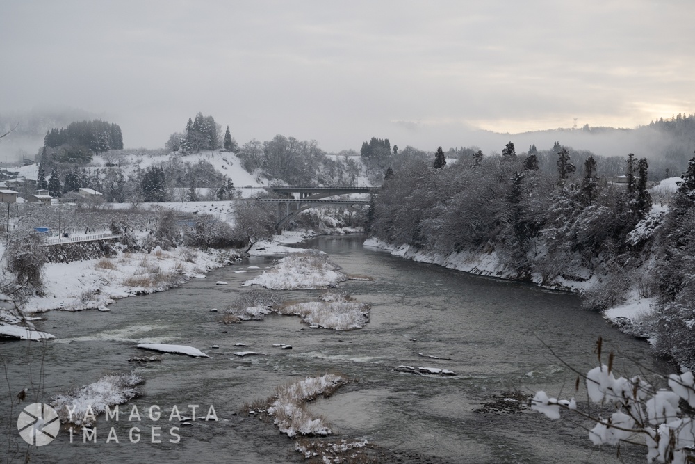 最上川ビューポイント「明鏡橋」の雪景色